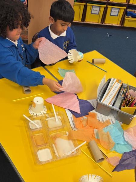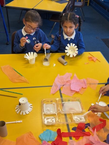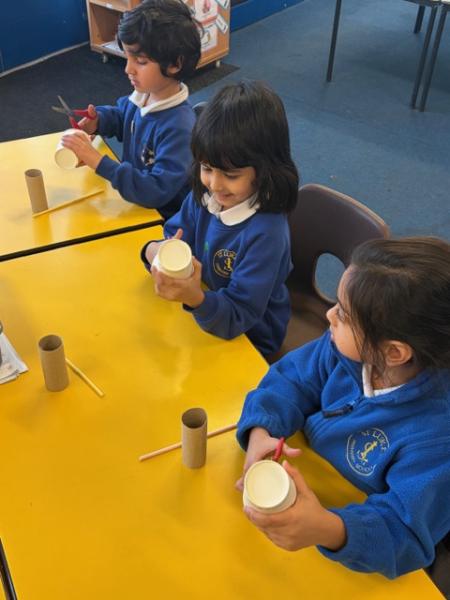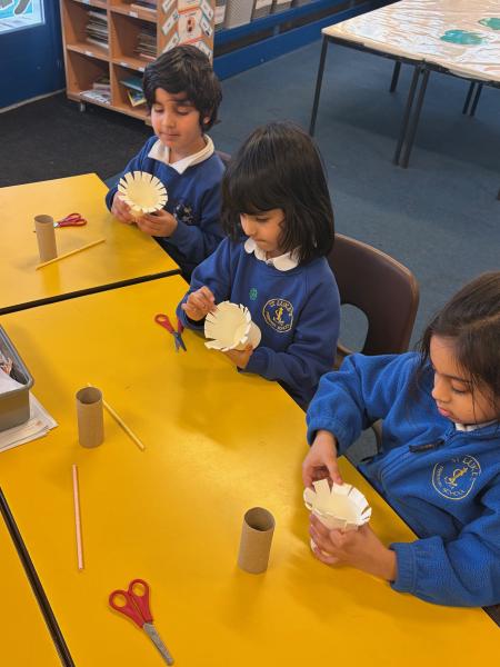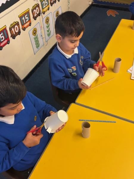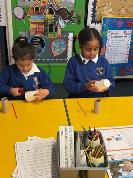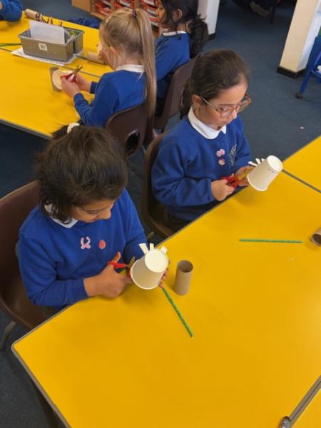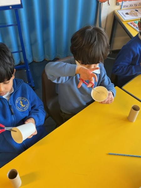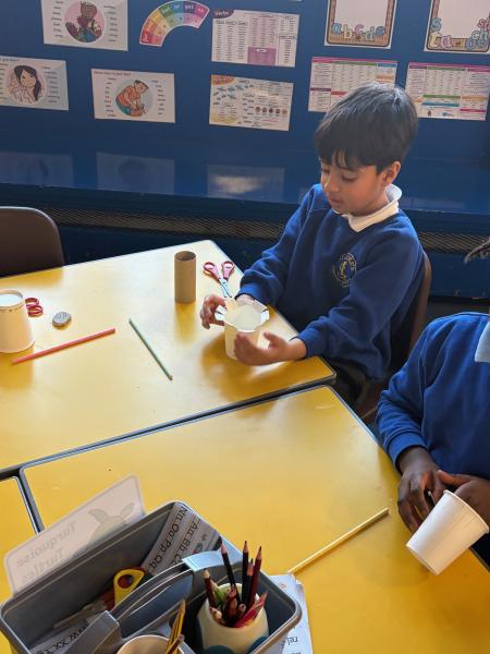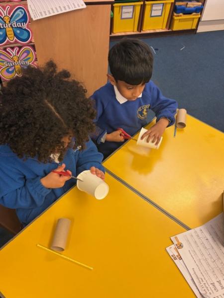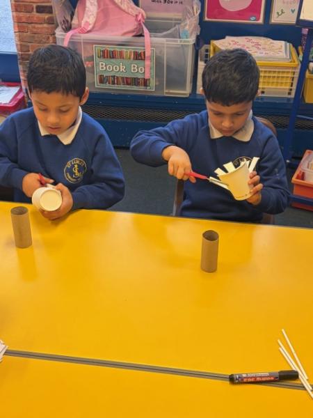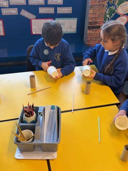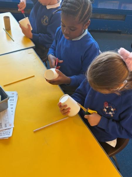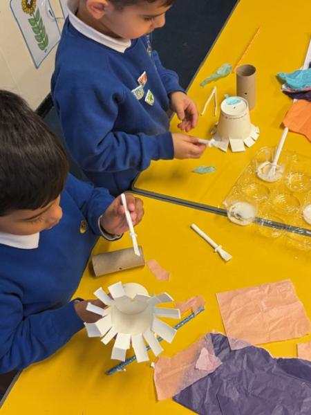Children have been learning about windmills in DT and the different mechanisms used to make a windmill. They created their own windmills using a paper cup, straw and toilet roll tube. Great work Y1!